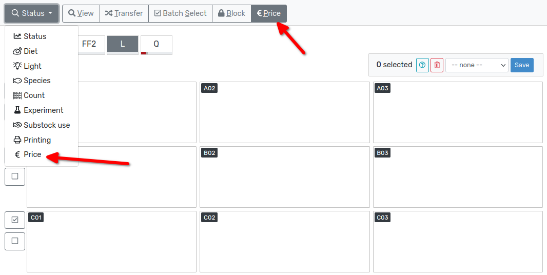 use scope "Price" to visualize and mode "Price" to edit (you can set a price for both empty and occupied tanks)