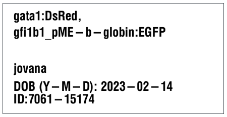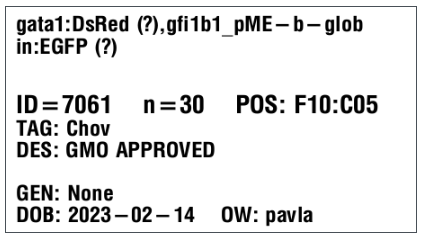 base_url- URL of your Zebrabase instance (i.e. https://demo.zebrabase.org); useful for generating QR codessubstock- all the data we know about the substock:id- substock ID (SSID)stock_id- stock ID (LSID)date_of_birth- date of birthname_gen- full generated namefacility_name_gen- shorter generated name used in facility viewlist_name_gen- shorter generated name used in list viewgenotypes_zygosities- list of genotypes and their zygosities:genotype_name_gen,zygosity_namefishline_name- fishline aliasfishline_name_gen- fishline generated nameowners- list of owners:username,first_name,last_nameresponsible- responsible userworkgroups- list of workgroup details:nameand some otherfunding_name- fundingproject- project detail ornull- project detail:code,id,name,name_gen(code + name),leader, and some otherstatus- productivity statustags- list of tagslight_name- light statusdiet_name- diet statussubstock_num- substock number (within sibling substocks)generation- number of generationposition_fullname- full position including room and rackposition_name- position within rackroom_name- roomrack_name- rackspecies_name- speciessex_name- sexcount- fish countsuffix- substock suffix- ... and some more. You can use anything contained in API response on endpoint